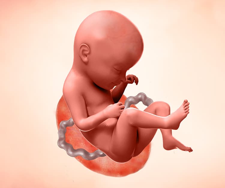 Your baby is getting pretty snug in the womb. They’re starting to become a bit too cozy in there to be doing a lot of position changes. But your cutie will still be kicking, sometimes pretty strong! A future soccer or karate star?