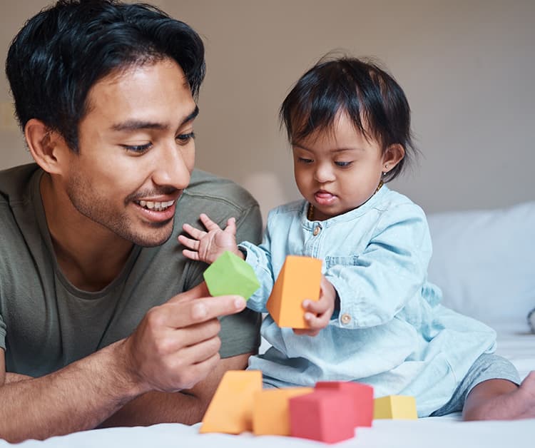 Children love to play with blocks! Give your child blocks that are small enough for your child's hands. Try building a simple tower. Let your child knock it down. What does your child do with the blocks? Stacking blocks will take time and your child will love doing this with you when older. Right now building and knocking down towers is a fun learning experience.